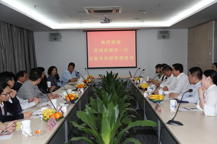 4月6日下午, 苏州市人大常委会领导徐国强一行莅临中丝园参观指导,庆鹏集团董事长郑桂泉、庆鹏集团常务副总经理陈岗及中丝园管理层参与了接待工作。